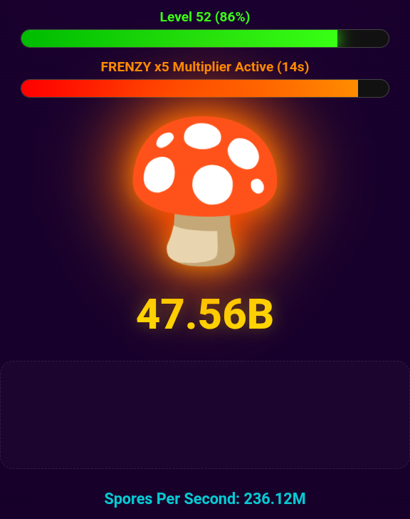 - π±οΈ Kinetic Clicking: Tap the giant 3D-pulsing mushroom to generate spores. Feel the rhythm as you build your bank!